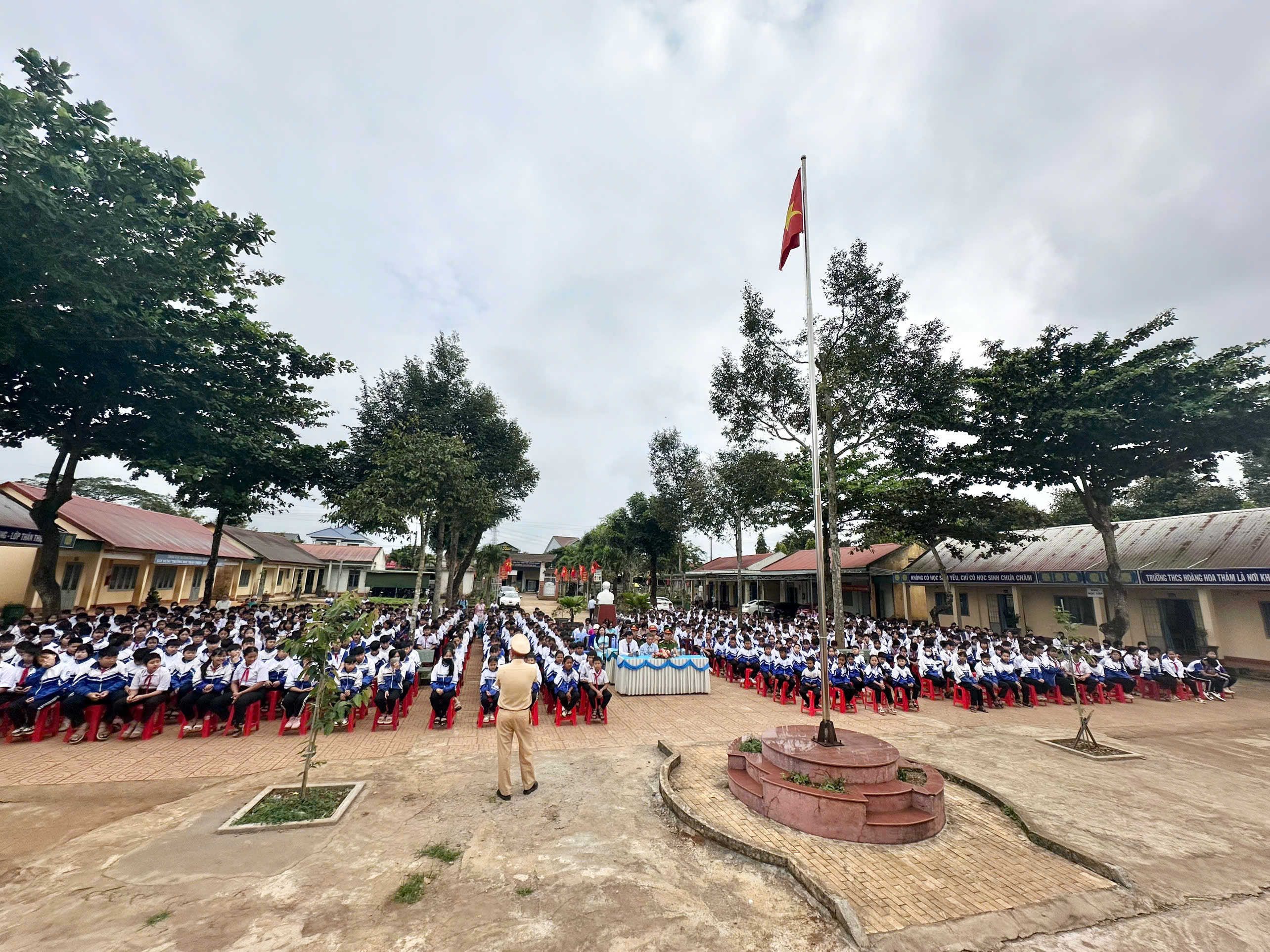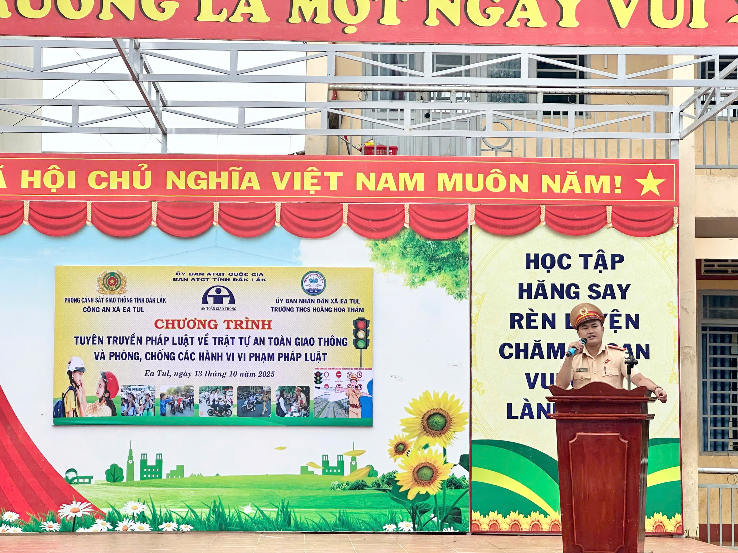 Sáng ngày 13/10/2025, Trường THCS Hoàng Hoa Thám, xã Ea Tul, tỉnh Đắk Lắk đã tổ chức buổi tuyên truyền An toàn giao thông và An ninh trật tự.